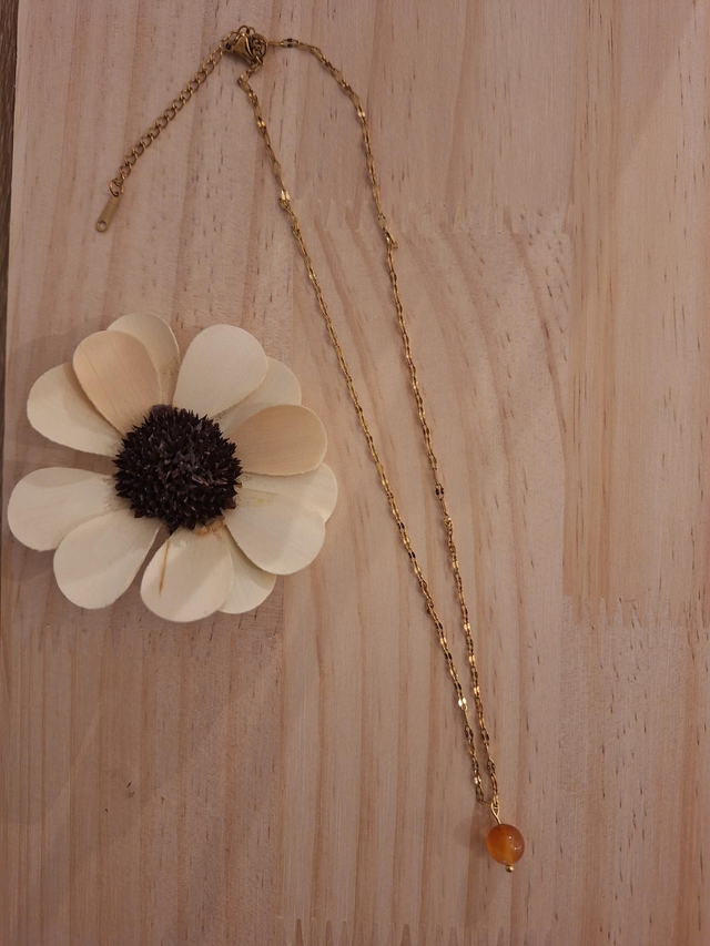 Collier fin en acier inoxydable, raffiné et élégant. Orné d’une perle en pierre naturelle (pierre au choix), il allie bien-être et style au quotidien. Un bijou minimaliste et chic à porter seul ou en accumulation.